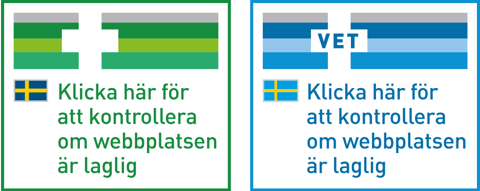 När du handlar läkemedel på nätet ska du alltid kunna kontrollera att nätapoteket har tillstånd. Det gör du genom att klicka på symbolen för Säker e-handel. Den blå symbolen visar att nätapoteket även har rätt att sälja djurläkemedel inom EU/EES: