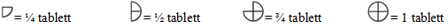 Tabletter kan delas i 2 eller 4 lika stora delar för att säkerställa rätt dosering. Lägg tabletten på en plan yta med sidan med brytskåra uppåt och den konvexa (rundade) sidan nedåt.