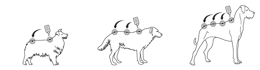 Steg 3: Kläm försiktigt på pipetten och applicera hela innehållet direkt på hundens hud, använd ett appliceringsställe (vid små mängder) eller flera appliceringsställen längs rygglinjen från skuldran till svansroten. Undvik att applicera mer än 1 ml av läkemedlet på ett och samma ställe då det kan göra att