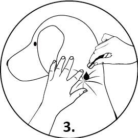 Administreringssätt:Avlägsna produkt-pipetten från skyddsförpackningen.Håll pipetten upprätt.Tryck på den smala delen av pipetten för att säkerställa att innehållet förblir inom pipettens huvuddel. Bryt av spetsen.Dela djurets päls vid nackbasen framför skulderbladen tills huden är synlig.Placera pipettens spets på huden och pressa pipetten flera gånger för att tömma innehållet helt och direkt på huden på en plats.