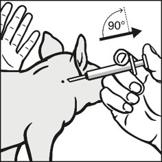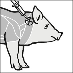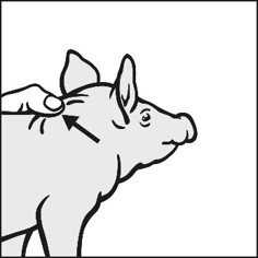 Varje spädgris ska injiceras med en injektionsnål (21 gauge). Rekommenderatinjektionsställe är i nackområdet (se bild nedan).