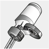 Ta tag i lyofilisatflaskan med fingrarna och placera tummen direkt under den präglade triangeln på injektionsflaskans lock.