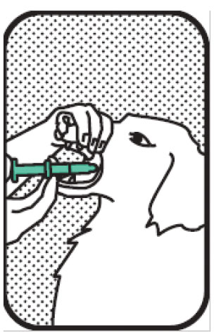Ge inte hunden mat under en timme före till en timme efter behandling eftersom detta kan försena absorptionen. En liten matbit kan ges för att hunden ska svälja lösningen. Vatten kan vara fritt tillgängligt.