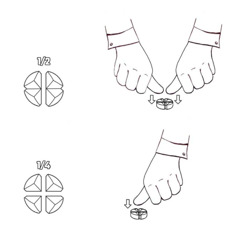 Fjärdedelar: tryck ner med tummen i mitten av tabletten.