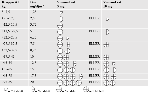 Tabletterna kan delas i två eller fyra lika stora delar för att säkerställa korrekt dosering. Placera tabletten på en plan yta, med den skårade sidan uppåt och den konvexa (rundade) sidan mot ytan.