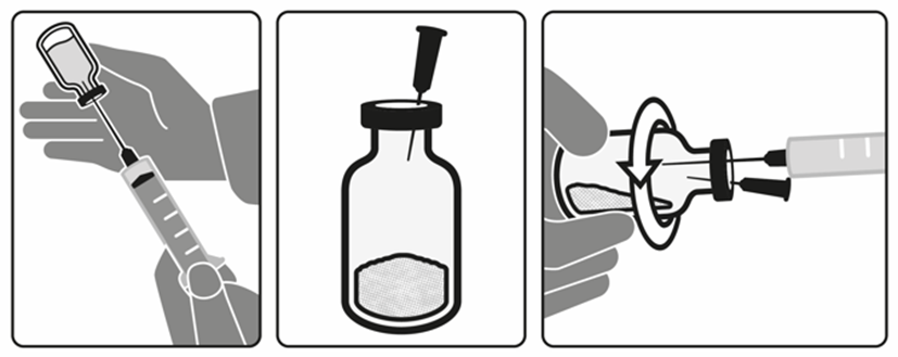 Bered 1 injektionsflaska med pulver med 15 ml spädningsvätska. Det rekommenderas att en 18 G steril överföringskanyl och en 20 ml steril spruta används för beredning av läkemedlet.