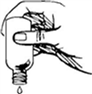 Vänd flaskan helt upp och ner. Om inga droppar kommer ut, knacka lätt på flaskan för att sätta igång flödet.