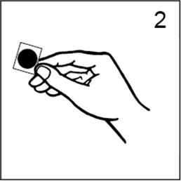 Håll i kanten av plåstret och ta bort den fyrkantiga genomskinliga skyddsfilmen utan att röra den silverfärgade självhäftande sidan (Fig. 2).