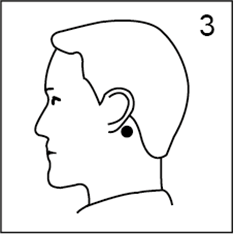 Tryck fast plåstret (silverfärgade självhäftande sidan nedåt) på en ren, torr, hårfri hudyta bakom örat (Fig. 3).