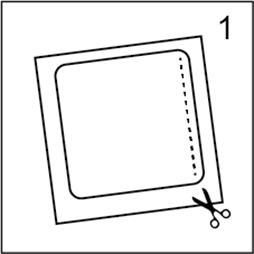 Klipp längs den prickade linjen och ta ut det beiga plåstret komplett med den transparenta fyrkantiga skyddsfilmen (Fig. 1).