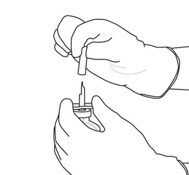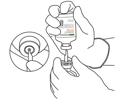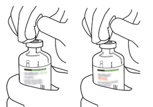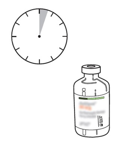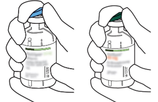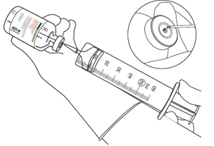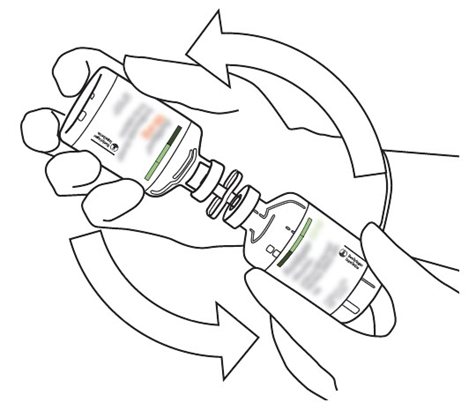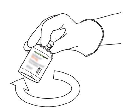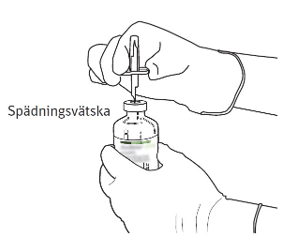 (*om en överföringskanyl är inkluderad i förpackningen. Rekonstitueringen kan också göras med en spruta och nål.)