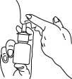 1. Ta av och spara säkerhetsklämman och skyddshatten så att sprayspetsen synliggörs. Håll flaskan upprätt, riktad bort från dig med två fingrar på ”axlarna” och tummen mot undersidan av flaskan.
