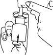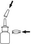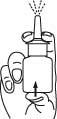 4. Böj huvudet lätt framåt. Håll för ena näsborren och för in sprayspetsen i den andra. Rikta sprayspetsen bakåt och mot den yttre sidan av näsan.