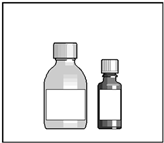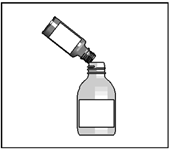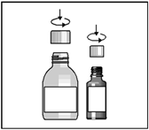 Öppna båda flaskorna. Barnskyddad förslutning. Tryck ned som visas på kapsylen och vrid till vänster.