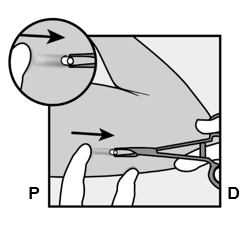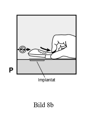 För att säkerställa att implantatet sätts in precis under huden, bör läkaren/barnmorskan positionera sig så de ser nålens rörelse framåt genom att titta på applikatorn från sidan och inte uppifrån över armen. Från sidan ska insättningsstället och nålens rörelse precis under huden tydligt synas.