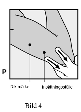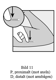 Det nya implantatet kan sättas in i samma arm och genom samma incision som där det föregående implantatet togs ut, så länge som stället är korrekt, dvs. 8‑10 cm från den mediala epikondylen av humerus och 3‑5 cm posteriort om (under) sulcus (se avsnitt 4.2 ”Hur man sätter in Nexplanon”).