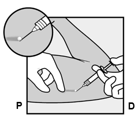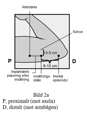 Implantatet ska sättas in subdermalt precis under huden på insidan av den icke-dominanta överarmen.