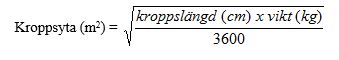 Innan beredning av infusionslösning, beräkna patientens kroppsyta enligt följande formel (Mosteller´s formel):