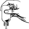 Vänd flaskan helt upp och ner. Om inga droppar kommer ut, knacka lätt på flaskan för att sätta igång flödet.