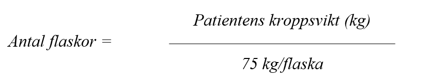 Det totala antalet flaskor som krävs för att uppnå önskad dos för den enskilda patienten kan beräknas med nedanstående formel (avrundat uppåt till närmaste hela flaska):