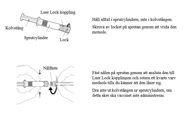 Ej använt vaccin och avfall ska kasseras enligt gällande anvisningar.