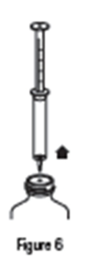 3. Avlägsna den fyllda sprutan från flaskan i upprätt läge (figur 5 och 6).
