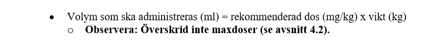 Volymen som ska administreras (ml) motsvarar den rekommenderade dosen (mg)