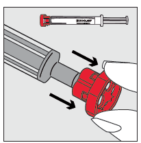 Förvara sprutan för oral användning i det skyddande plastfodralet.