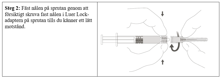 Följ steg 1 och 2 ovan för att bereda Luer Lock-sprutan och nålen för fastsättning.