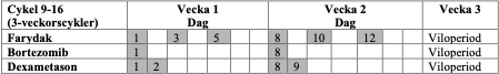 Tabell 1 Rekommenderat doseringsschema för panobinostat i kombination med bortezomib och dexametason (cykel 1-8)