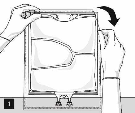Öppna så här: Dra bort skyddsförpackningen genom att börja från rivskårorna (fig. 1). Ta ut påsen ur skyddsförpackningen. Kassera skyddsförpackningen, syreindikatorn och syreabsorbenten.