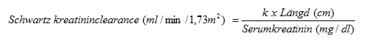 Om uträknat Schwartz kreatininclearance överstiger 150 ml/min/1,73 m2, ska ett maximalt värde på 150 ml/min/1,73 m2 användas i ekvationen: