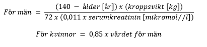Kreatininclearance (ml/min) kan relateras till serumkreatinin enligt följande formel: