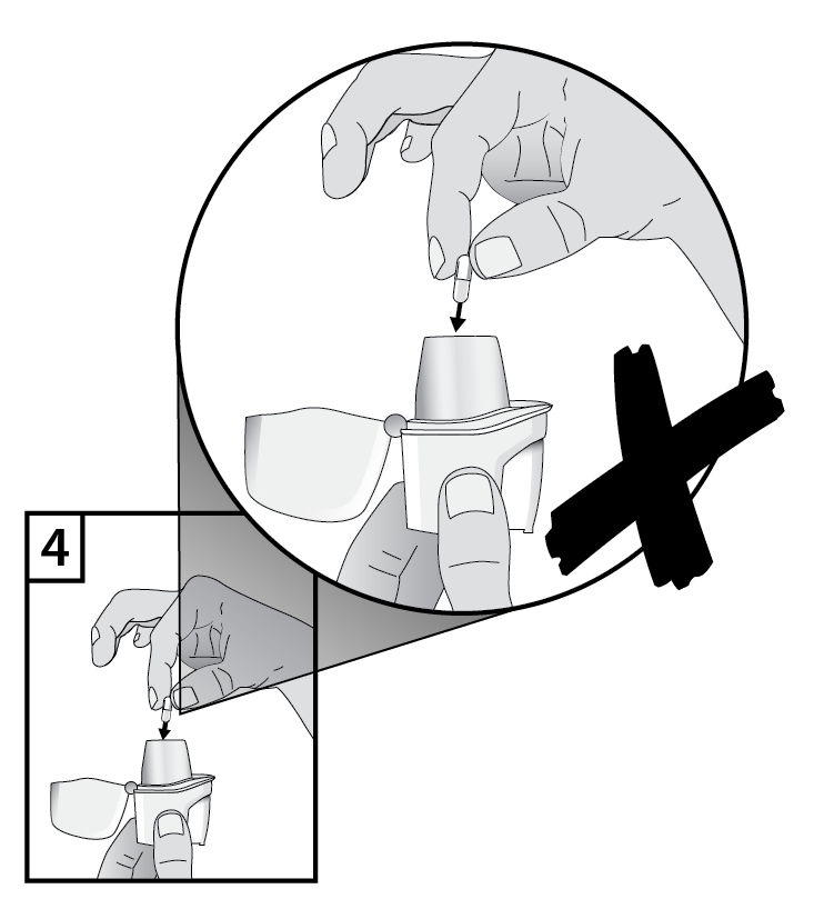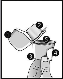 3. Ta ut en Braltus-kapsel från burken omedelbart före användning och stäng burken ordentligt. Placera en kapsel i kammaren i inhalatorns underdel. Förvara inte kapseln i Zonda-inhalatorn