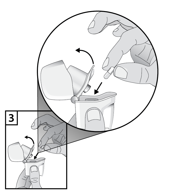 Instruera patienten att noga följa användaranvisningarna i bipacksedeln. Uppmärksamma patienten på de extra bilderna på insidan av kartongens lock som visar hur man placerar kapseln på rätt sätt i inhalatorn. För att undvika risk för kvävning, instruera patienten att ALDRIG lägga en kapsel direkt i munstycket.