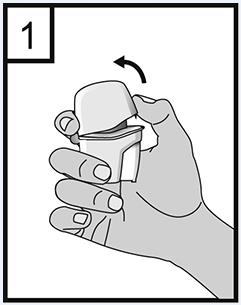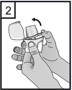2. Håll ett fast grepp om inhalatorns underdel och öppna munstycket genom att dra det uppåt i pilens riktning.