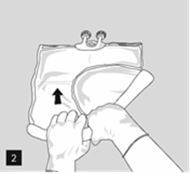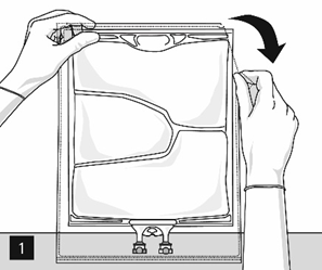 Öppna så här: Dra bort skyddsförpackningen genom att börja från rivskårorna (fig. 1). Ta ut påsen ur skyddsförpackningen. Kassera skyddsförpackningen, syreindikatorn och syreabsorbenten.