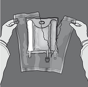 I figur 1 och 2 illustreras hur den skyddande ytterpåsen avlägsnas. Kasta ytterpåsen, syreindikatorn och syreabsorberaren.