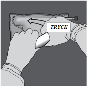 Aktivering av trekammarpåse (brytning av de två icke-permanenta förslutningarna)