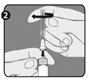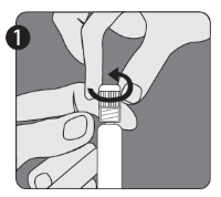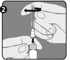 Efter slutförd beredning av vaccinet ska locket avlägsnas från den andra nålen (på det sätt som förklaras i steg 1 för nålarna) och nålen som används för beredning ersättas med den andra nålen som används för administrering. Använd inte samma nål för beredning som för administrering.