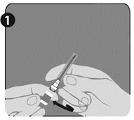 Montering av nål (dessa anvisningar gäller båda tillhandahållna nålarna):