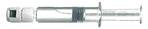Förfylld spruta med genomskinligt skruvlock:
