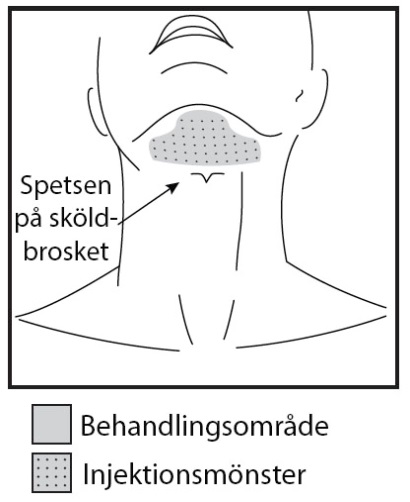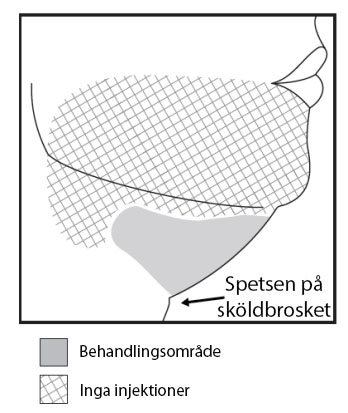 Undvik injektion i salivkörtlar, tyreoideakörtel, lymfknutor och muskulatur.