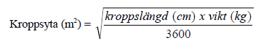 Innan beredning av infusionslösning, beräkna patientens kroppsyta enligt följande formel (Mosteller´s formel2):