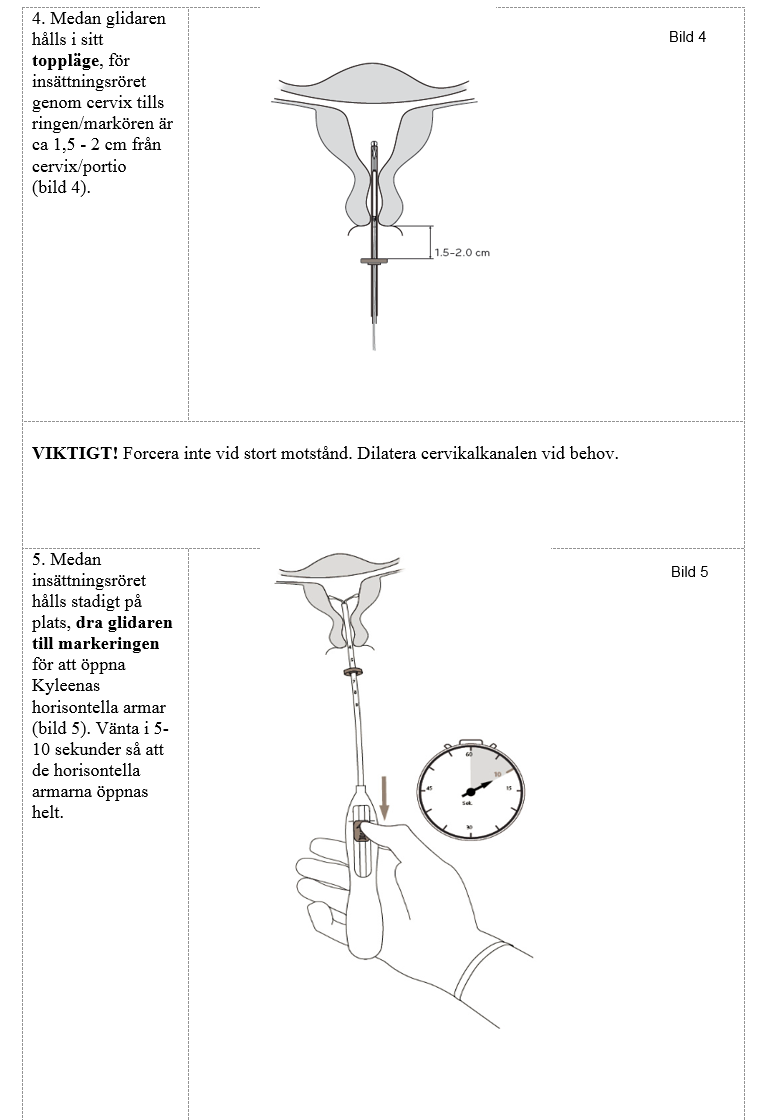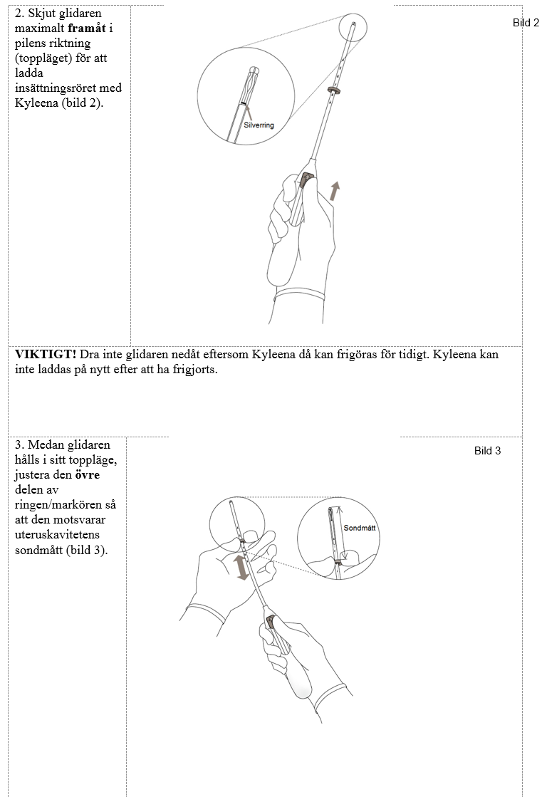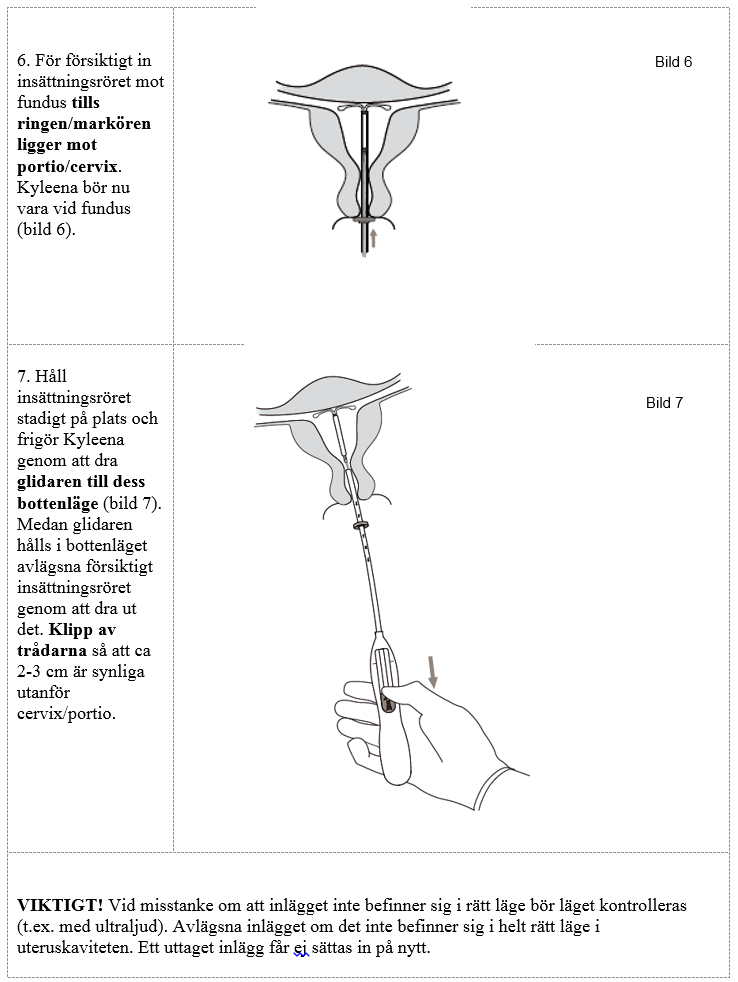 Det rekommenderas att Kyleena endast sätts in av behörig hälso- och sjukvårdspersonal med tidigare erfarenhet av att sätta in intrauterina inlägg och/eller som har genomgått utbildning för insättning av Kyleena.