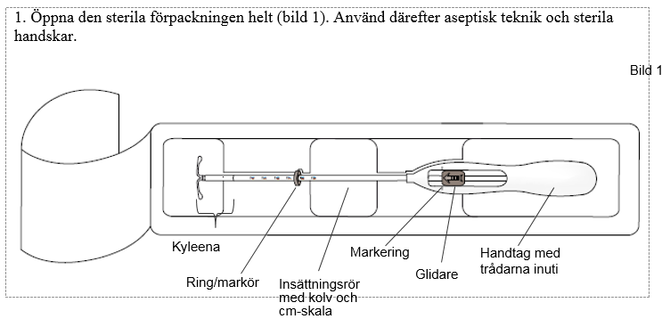 Ska insättas av behörig sjukvårdspersonal med aseptisk teknik (se avsnitt 4.2).