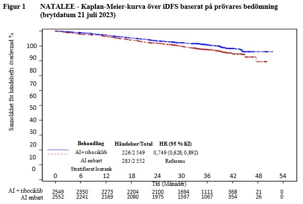 När Kisqali används i kombination med en AI ska AI tas peroralt en gång dagligen under hela 28-dagarscykeln. Läs produktresumén för AI för ytterligare information.