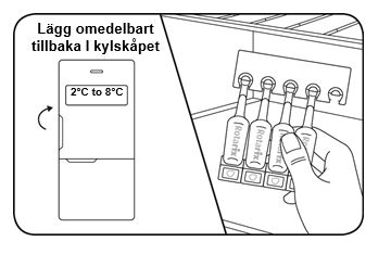 D. Lägg omedelbart tillbaka kvarvarande doser i kylskåpet