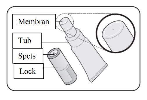 När tuben är öppnad, kontrollera att vätskan är klar utan några partiklar i den.