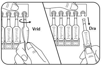 Instruktioner för administrering av vaccinet i en multiförpackning med endostuber (5 enkeldoser) sammanbundna med en platta: